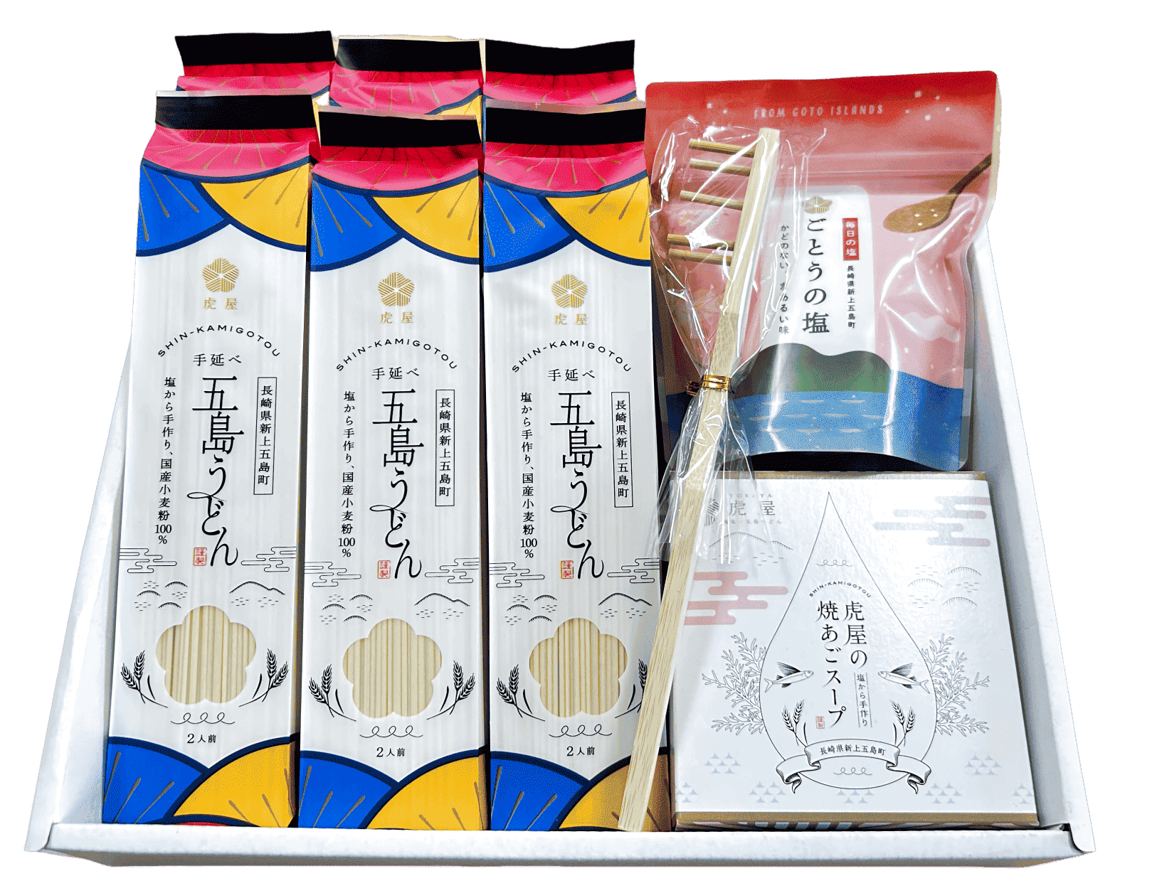 上五島の美しい海からとれた海塩と、その塩からできた五島うどんを、合わせてお楽しみいただけます。
